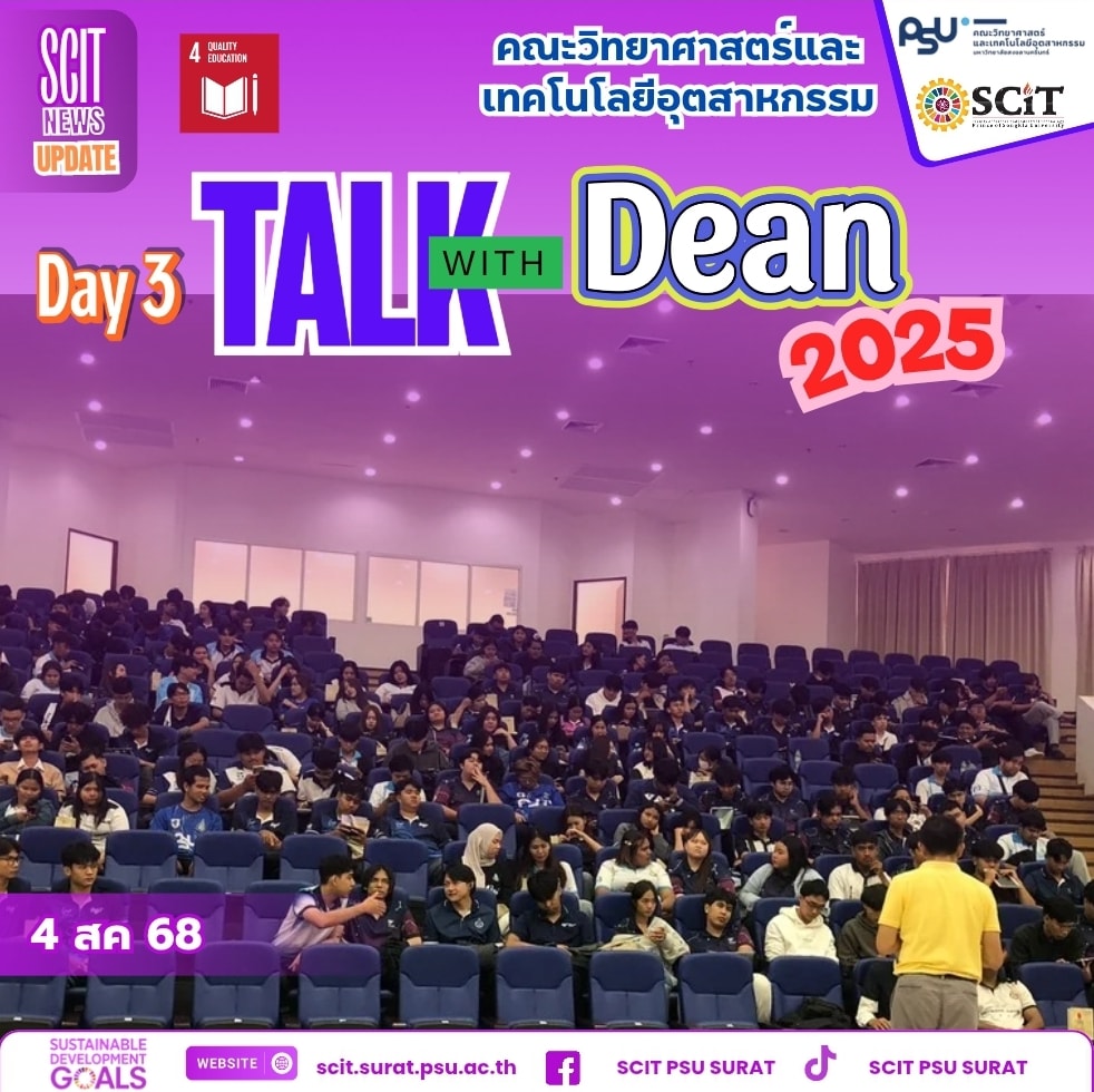 คณบดี รศ.ดร.ยุทธพงศ์ เพียรโรจน์ พบปะและพูดคุยอย่างใกล้ชิดกับ นักศึกษาระดับปริญญาตรี และบัณฑิตศึกษา เพื่อรับฟังข้อเสนอแนะ ความคิดเห็น และแลกเปลี่ยนมุมมองในการพัฒนาหลักสูตร รวมถึงการสนับสนุนการเรียน การวิจัย และโอกาสทางวิชาการ