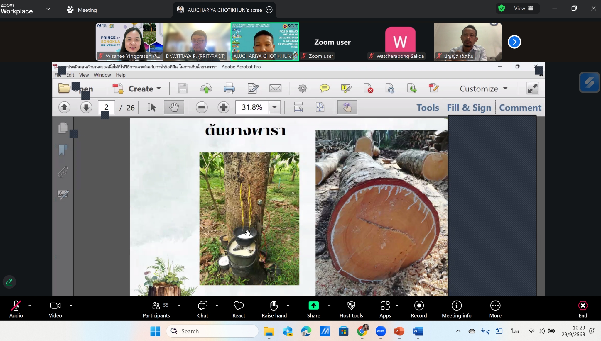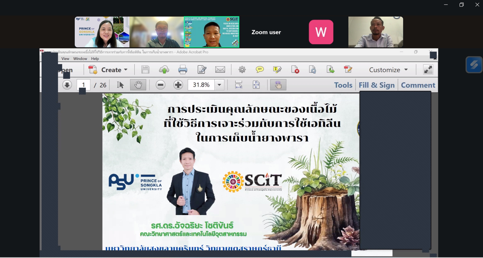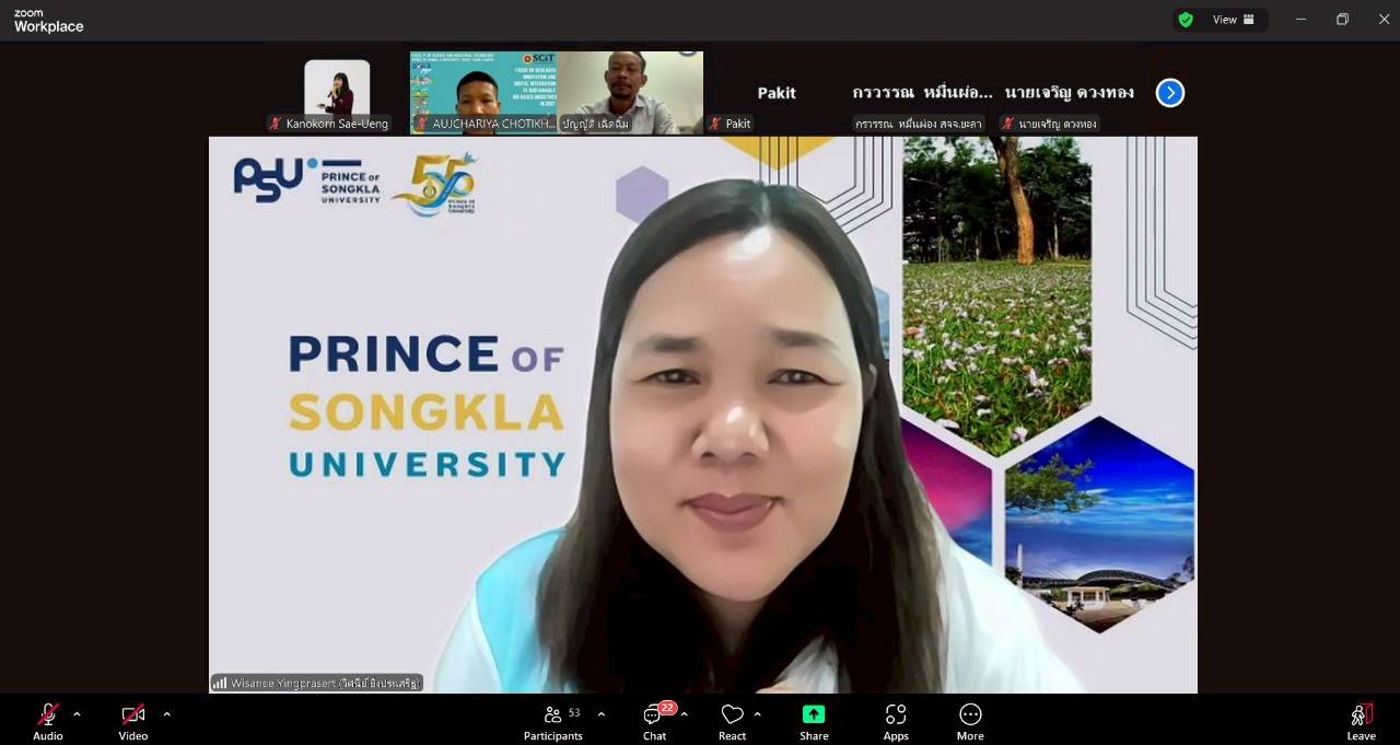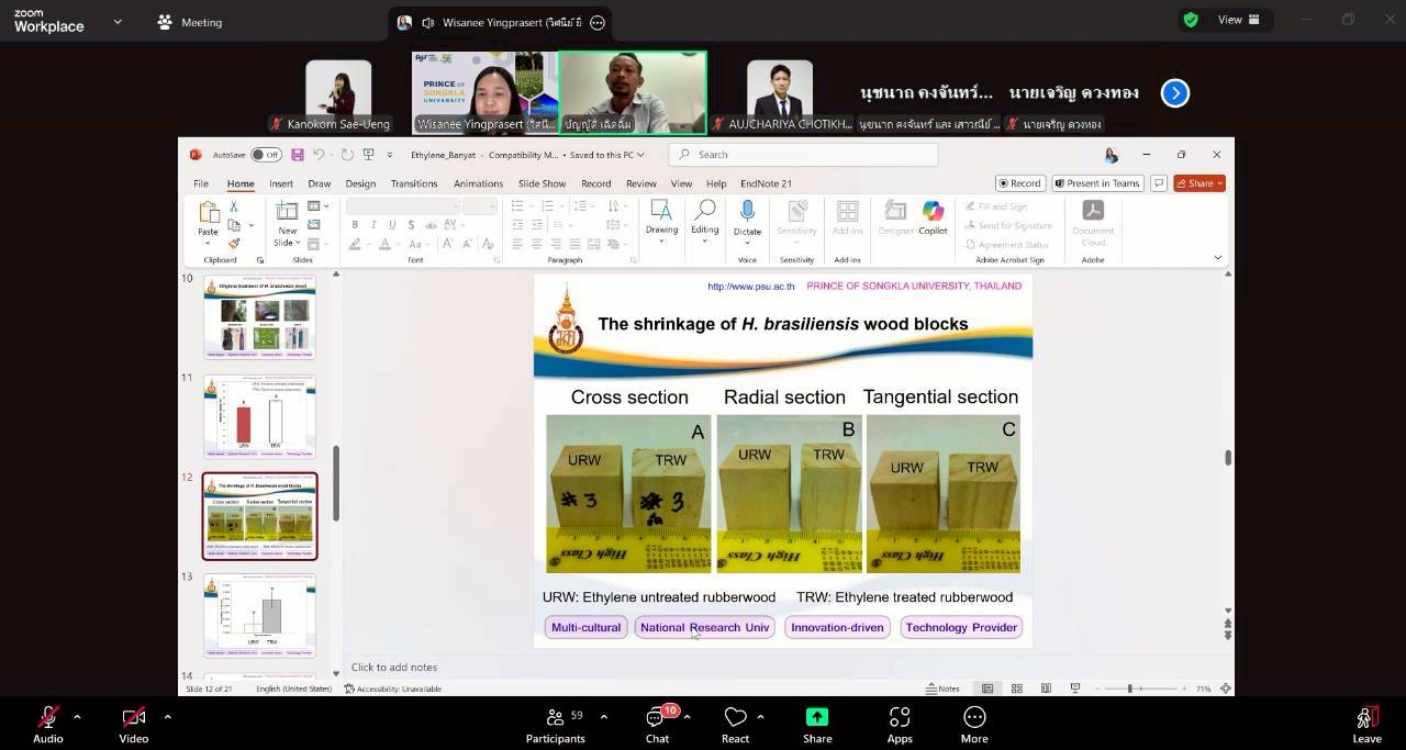 เมื่อวันที่ 29 กันยายน 2568 คณะวิทยาศาสตร์และเทคโนโลยีอุตสาหกรรม (SCIT) มหาวิทยาลัยสงขลานครินทร์ วิทยาเขตสุราษฎร์ธานี (PSU Surat) จัดกิจกรรม เสวนาออนไลน์ ฟรี ในหัวข้อ “ไขความลับ สมบัติของไม้ยางพาราอัดแก๊สเอทิลีน เปลี่ยนไปอย่างไร” ผ่านระบบ Zoom โดยได้รับความสนใจจาก เกษตรกร ผู้ประกอบการอุตสาหกรรมไม้ และบุคคลทั่วไปที่สนใจนวัตกรรมไม้ มีผู้เข้าร่วมกว่า 87 คน