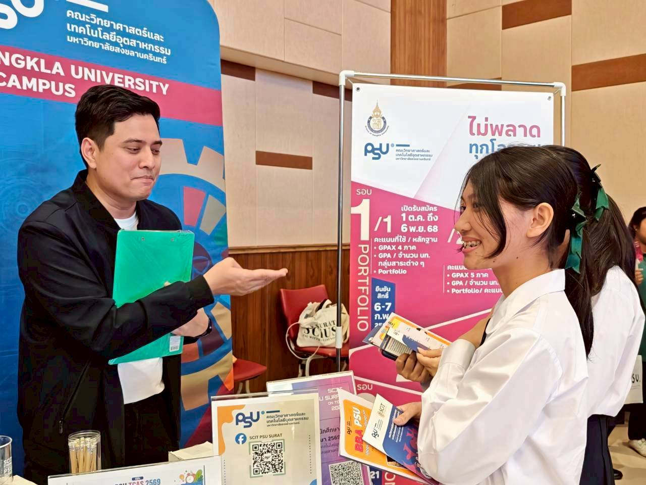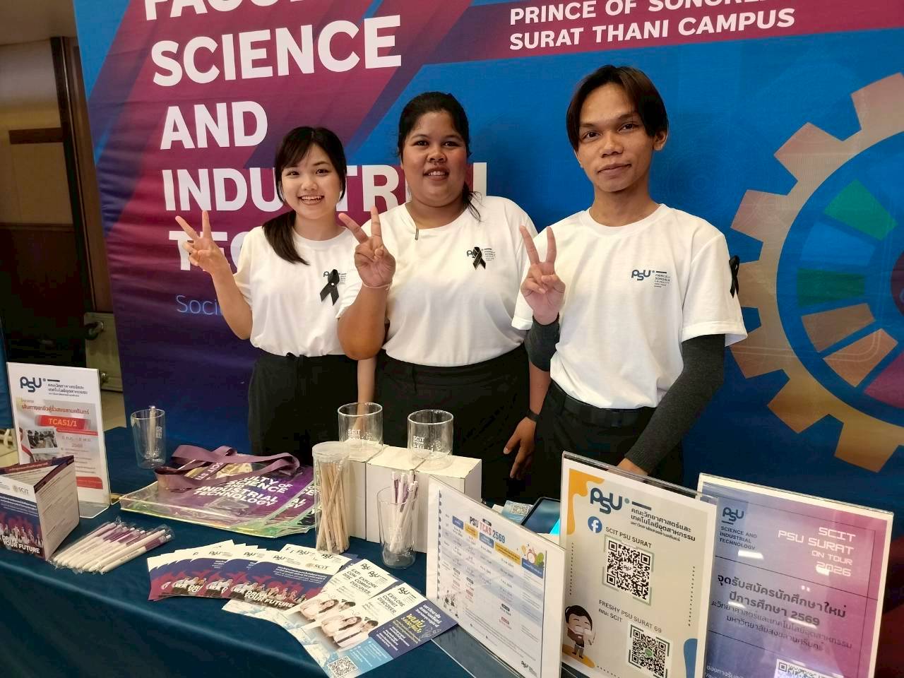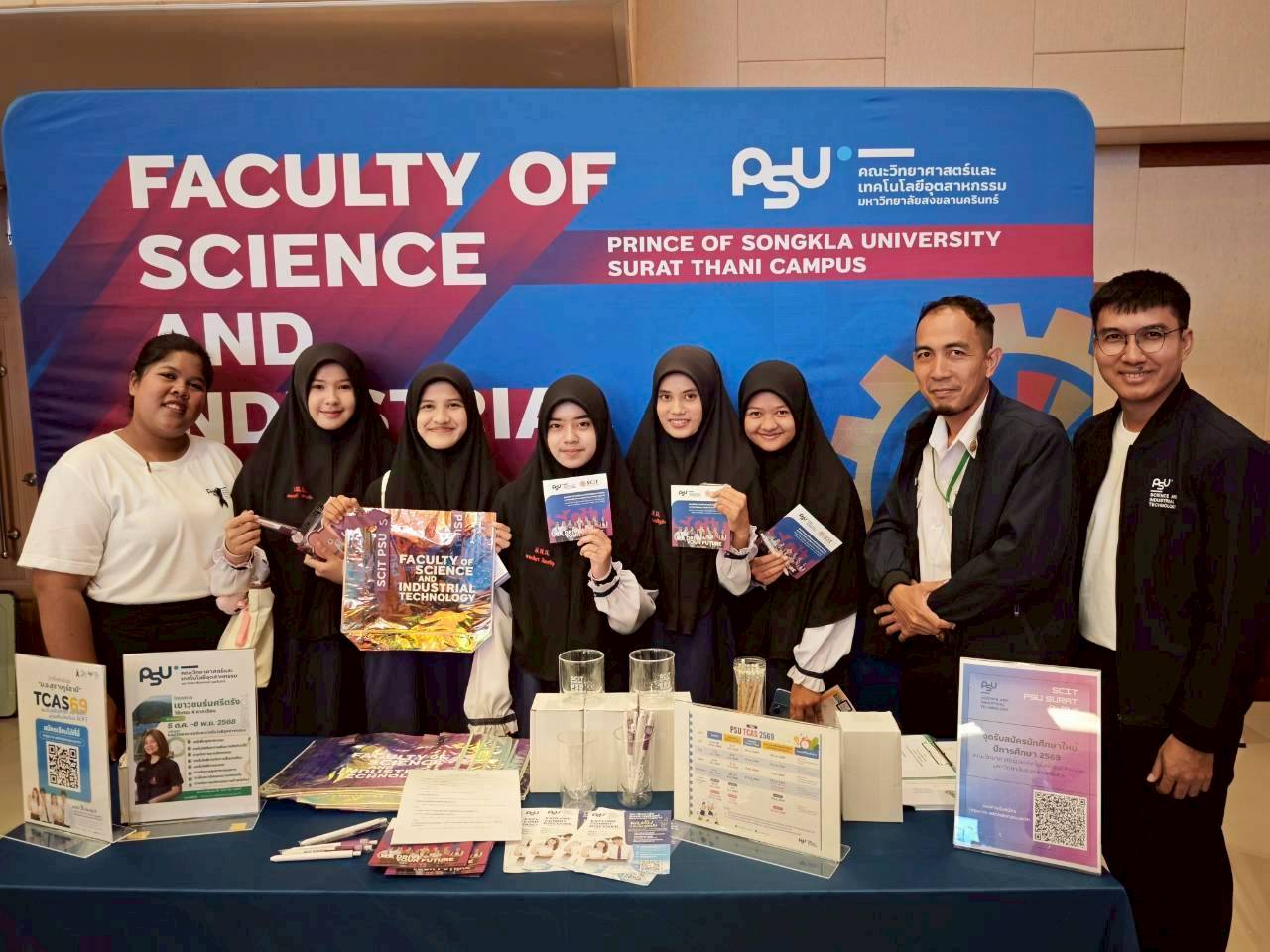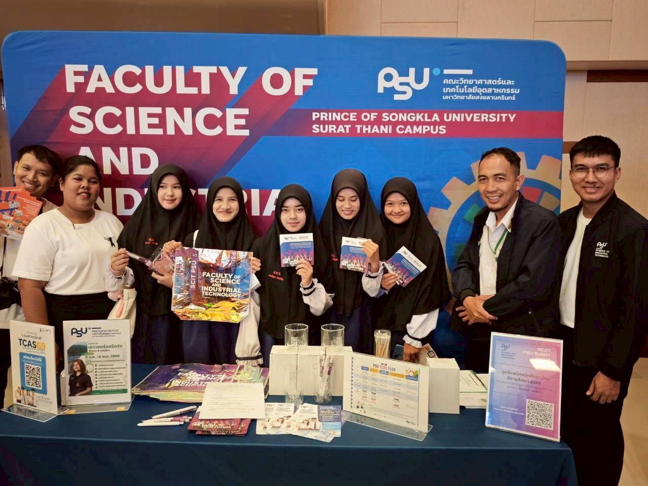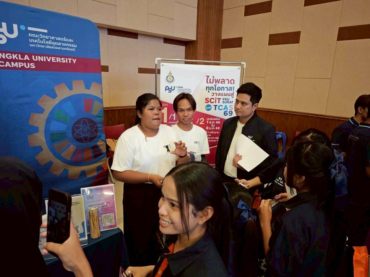 3 พฤศจิกายน 2568 คณะวิทยาศาสตร์และเทคโนโลยีอุตสาหกรรม มหาวิทยาลัยสงขลานครินทร์ วิทยาเขตสุราษฎร์ธานี ได้เข้าร่วมโครงการประชาสัมพันธ์หลักสูตรและการคัดเลือกบุคคลเข้าศึกษา TCAS69 สำหรับนักเรียนโรงเรียนมัธยมศึกษาตอนปลายในภาคใต้