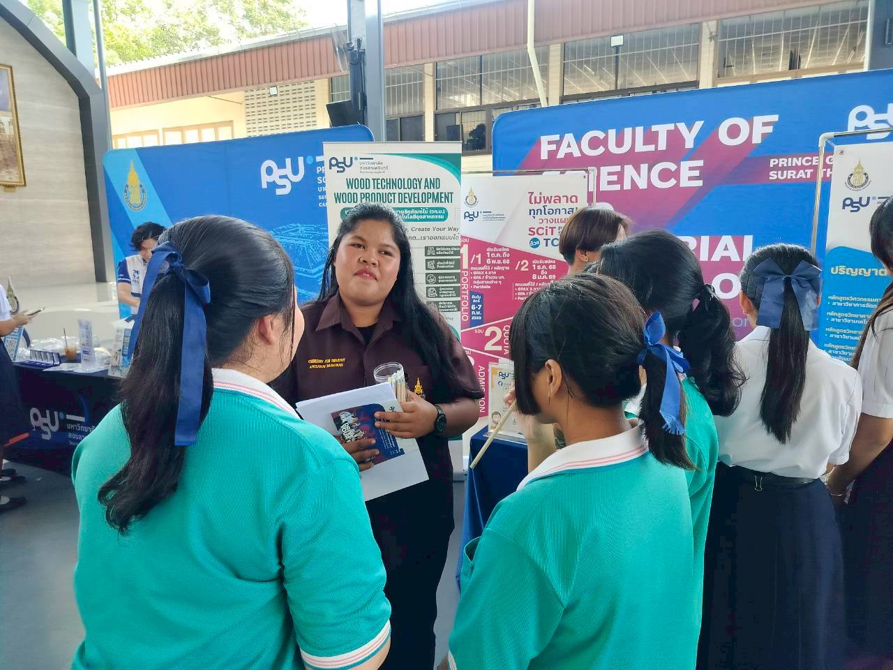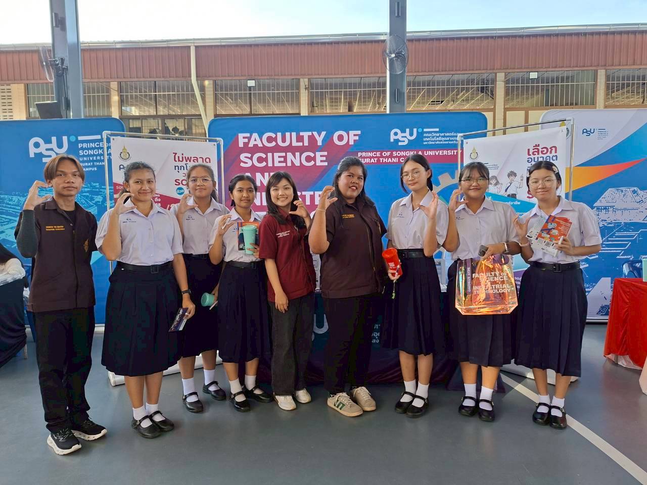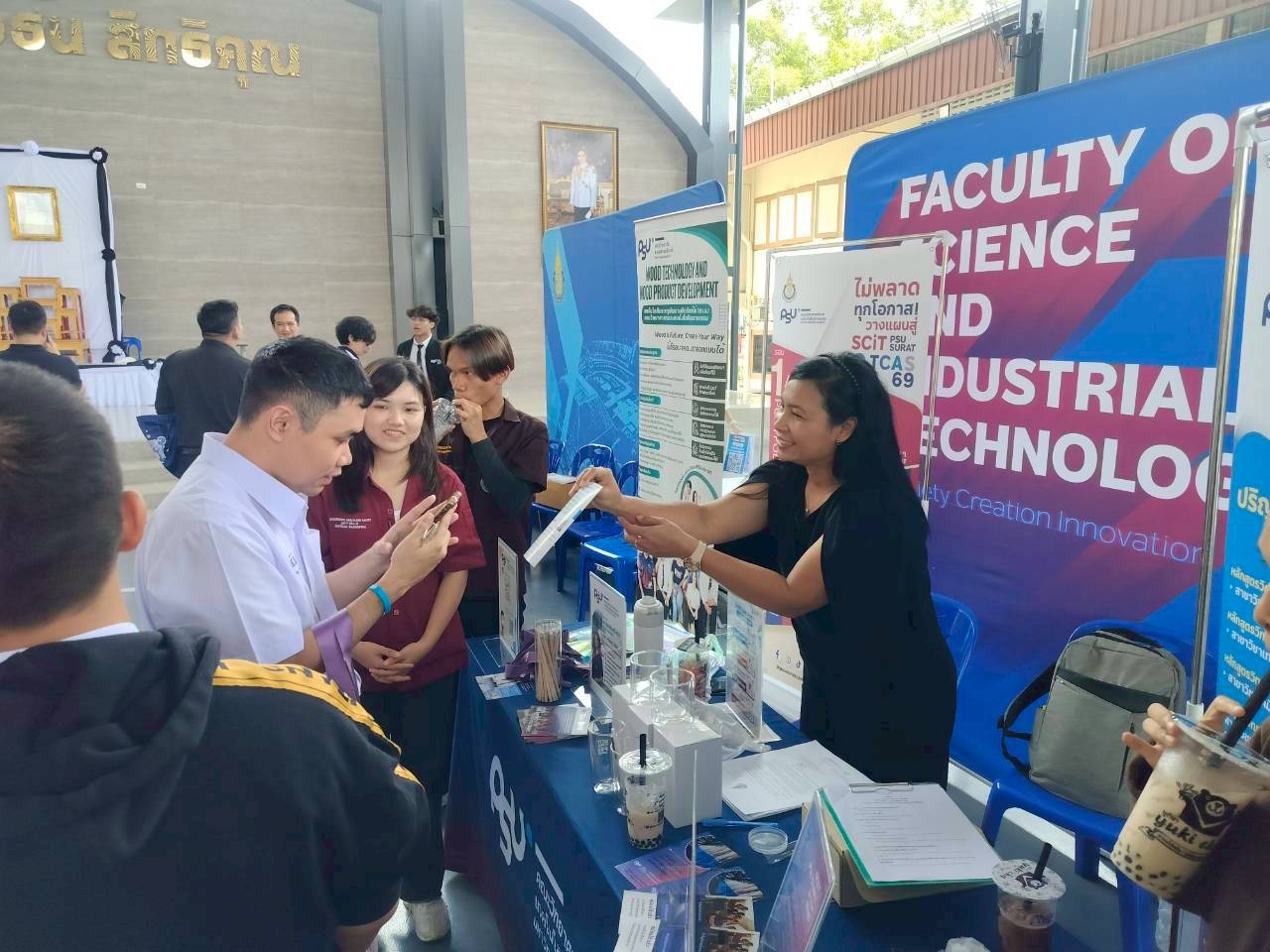 📅 เมื่อวันที่ 4 พฤษภาคม 2568 คณะวิทยาศาสตร์และเทคโนโลยีอุตสาหกรรม มหาวิทยาลัยสงขลานครินทร์ วิทยาเขตสุราษฎร์ธานี ได้เข้าร่วมโครงการประชาสัมพันธ์หลักสูตรและการคัดเลือกบุคคลเข้าศึกษาในมหาวิทยาลัยสงขลานครินทร์ให้กับนักเรียนโรงเรียนมัธยมศึกษาตอนปลายในภาคใต้ปีการศึกษา 2569 (PSU Roadshow : TCAS69) ณ โรงเรียนสุราษฎร์ธานี จังหวัดสุราษฎร์ธานี