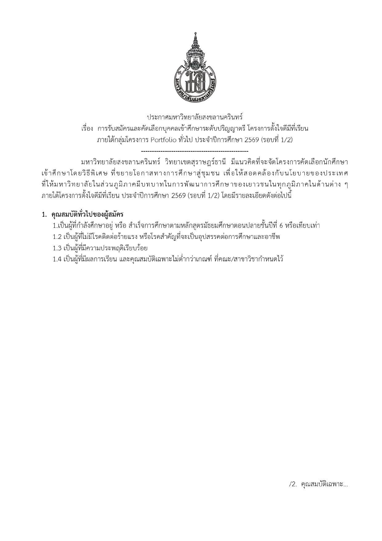 โครงการตั้งใจดีมีที่เรียน ปีการศึกษา 2569